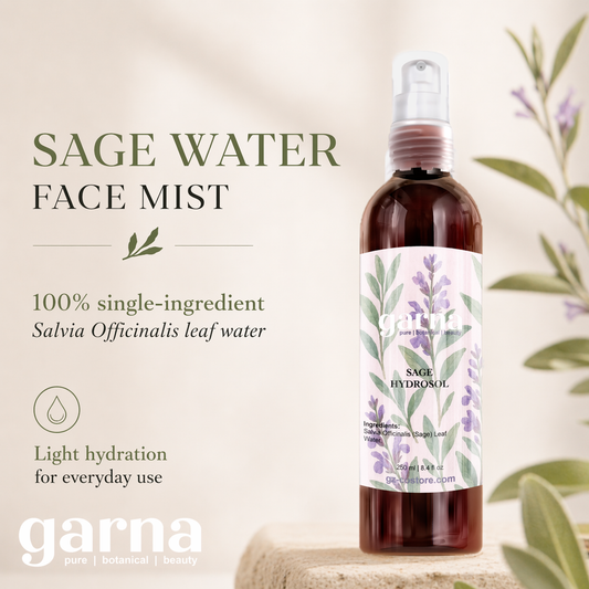 Sage Water Face Mist Spray 250 mL (8.4 fl oz) – Herbal Hydrosol for Face & Hair, Lightweight Daily Mist