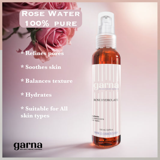 Garna Rose Water Spray 3.4 fl oz: Hydrating Face Toner & Hair Mist
